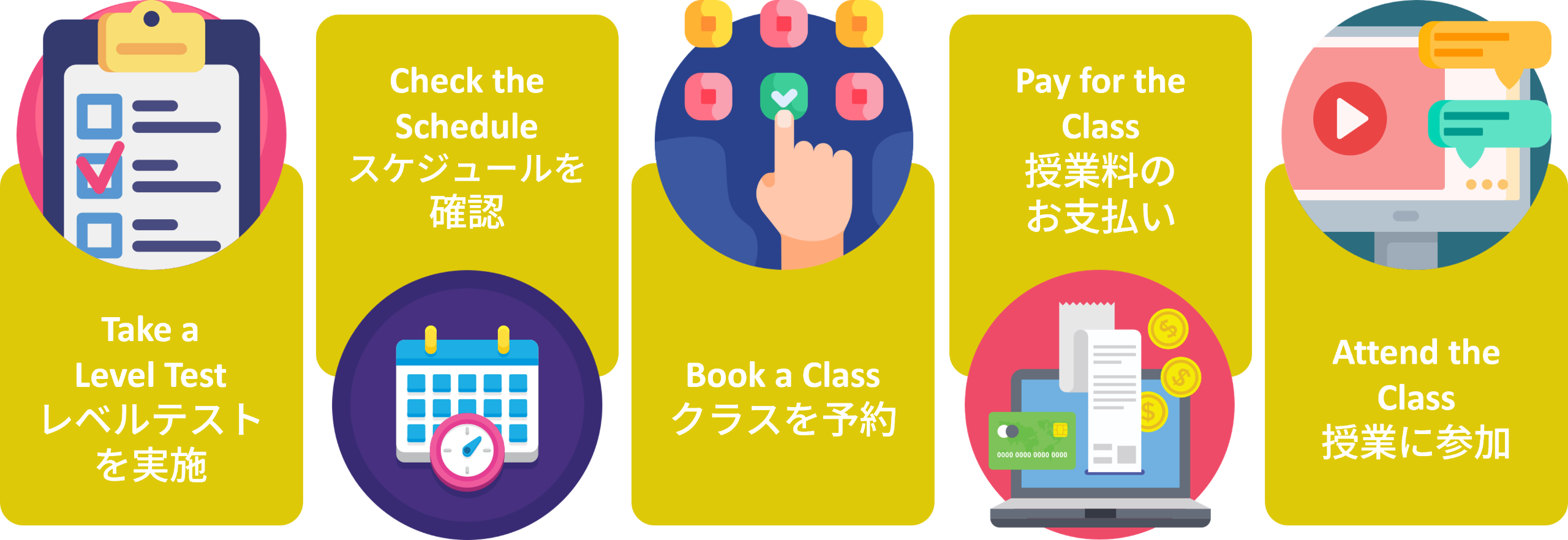 現在、「トピックトーク」と「ワークプレイスイングリッシュ」のクラスのみ開講しています。「トピックトーク」クラスは、ご予約いただいた時点で1つずつお支払いいただきます。「ワークプレイスイングリッシュ」クラスは、5つまとめてお支払いいただきます。そのため、大きな初期費用はかかりません。現在、すべてを私が管理しているため、確実に受講できるクラスのみをご予約ください。キャンセルが必要な場合は、少なくとも24時間前までにご連絡ください。直前のキャンセルは返金対象外となります。直前のキャンセルは、そのクラスの席を埋めることができない可能性があるためです。「ワークプレイスイングリッシュ」クラスは、コース途中での受講生の入れ替えが難しいため、全コースにご参加ください。受講生同士が良好な関係を築き、互いに打ち解けるためには、全コースを通して一緒に受講することが望ましいと考えています。「トピックトーク」クラスについては、スケジュールに教材をダウンロードするためのリンクがあります。授業前にダウンロードしてプレビューして、積極的に発言し、授業に参加してください。これは、あなた自身だけでなく、他の生徒にとっても大きなメリットとなります。