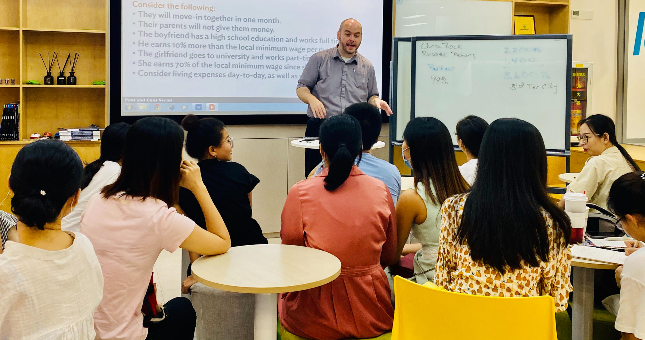 トピックトーク は、大人向けのリラックスした雰囲気のトピック中心スピーキングクラスです。このクラスの目的は、少人数のフレンドリーなグループの中で、実践的な会話練習を最大限に行うことです。各クラスの前に、その日のトピックに関する教材にアクセスできます。